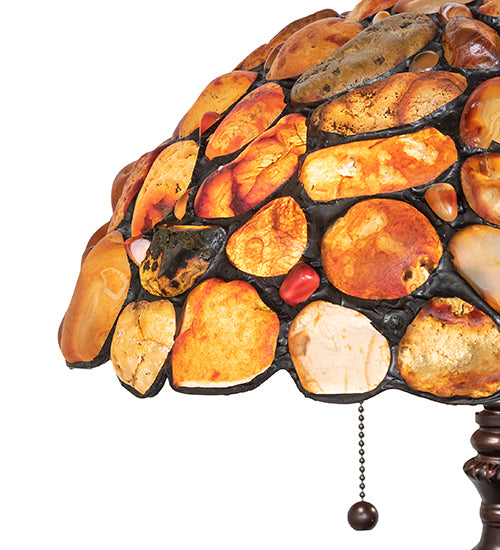 The Agata Table Lamp is a must-have for any home, adding a touch of elegance and natural beauty to any room. With its unique use of natural stones and the Meyda Tiffany copper foil construction process, it exudes an energy of peace, protection, and healing that will enhance your living space.