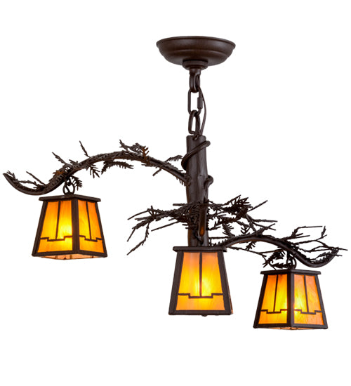 Custom 24"W Pine Branch Valley View 3 LT Chandelier Ceiling Light by Meyda