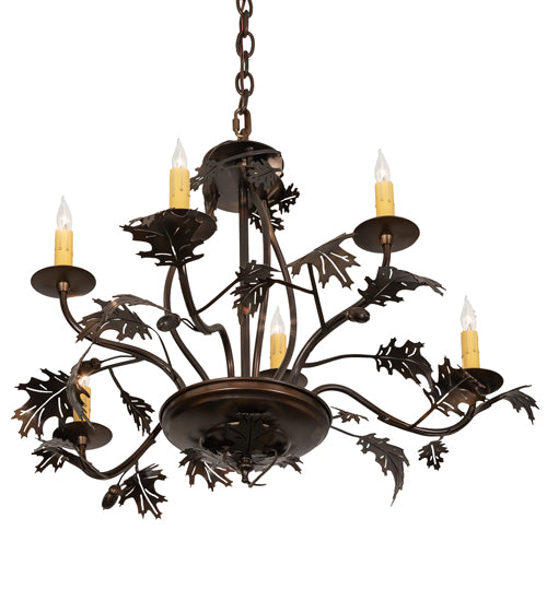 Custom 28" Wide Oak Leaf & Acorn 6 Light Chandelier Ceiling Light by Meyda