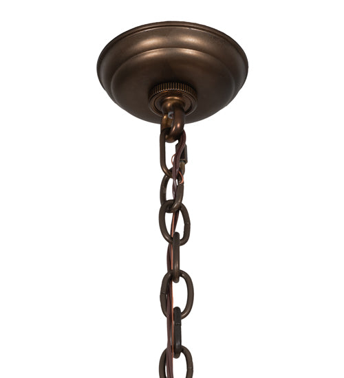 The overall height ranges from 27 to 104 inches as the chain length can be easily adjusted in the field. The Oak Leaf & Acorn Chandelier is included in our American-made, American-designed, handcrafted Nature-Inspired Lighting Collection. UL and cUL are listed for dry and damp locations.