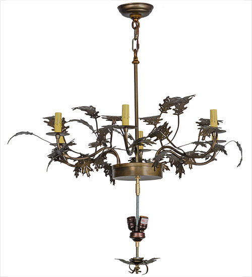 Indulge in luxury with the exquisitely handcrafted Custom 36"W Greenbriar Oak 6 Arm Chandelier Ceiling Light by Meyda. Elevate the style of your home by showcasing this refined pendant chandelier in your kitchen, living room, dining room, or entrance hall. With its antique copper finish, this piece exudes elegance and sophistication. Perfect for upscale residences, high-end restaurants, and luxurious hotels.