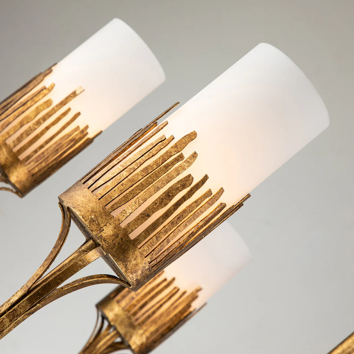 Sawgrass 9 Light Chandelier in Gold Leaf and Opal Glass Ceiling Light by Lucas McKearn