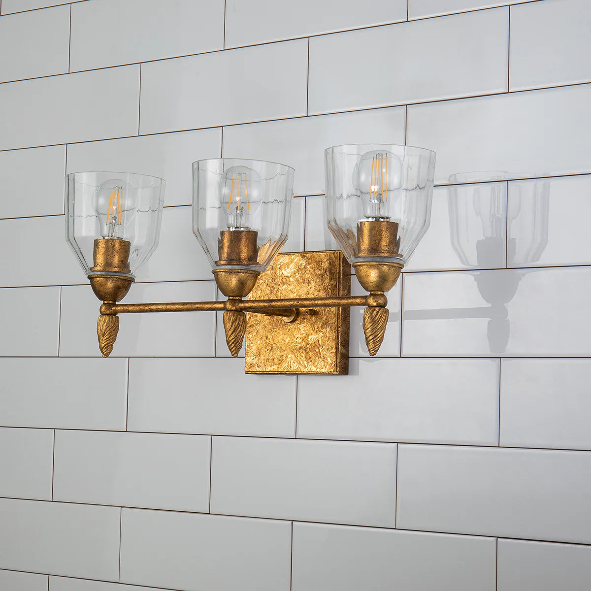 Discover the Felice 3 Light Bath Bar Wall Sconce Wall Lamp Home Decor by Lucas McKearn. With its clear glass shades and customizable finish & finial combination, this versatile fixture allows you to unleash your inner designer. Perfect for upgrading your bathroom decor, hallways, or as an accent piece. It can be used with LED bulbs and is dimmable for your convenience.