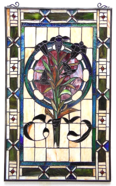 Tulips Tiffany-Style Stained Glass Vertical Decorative Hanging Window Panel 20x32 Home Decor by Chloe
