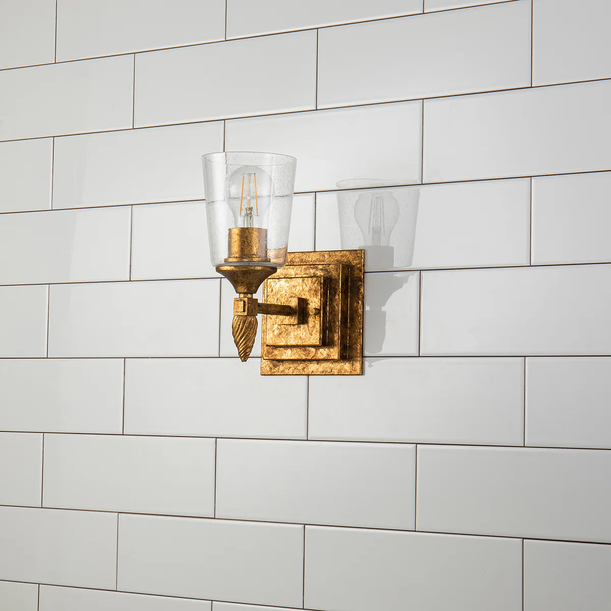 Enhance the look and feel of your bathroom or hallway with the Vetiver 1 Light Bath Bar in Gold Wall Sconce Wall Lamp Home Decor by Lucas McKearn. Its luxurious and modern design adds a touch of elegance to any space. With 1 bright lights, this fixture provides ample lighting and a stylish flair to your home. Plus, its hand-finished design and hardwired installation ensures a traditional look and sturdy build.