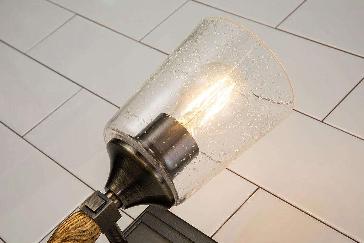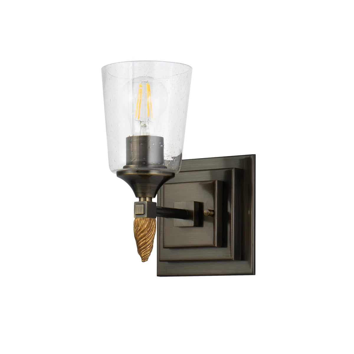 With four finial choices for a personalized touch, these sconces are completed with clear seeded glass shades. Vetiver 1 Light Bath Bar Wall Sconce Wall Lamp Home Decor by Lucas McKearn is perfect for illuminating your bathroom or hallway, and is LED compatible and dimmable for added convenience.