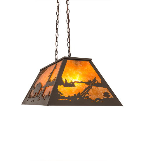 Custom 33"L Buffalo at Lake Oblong Pendant Ceiling Light by Meyda