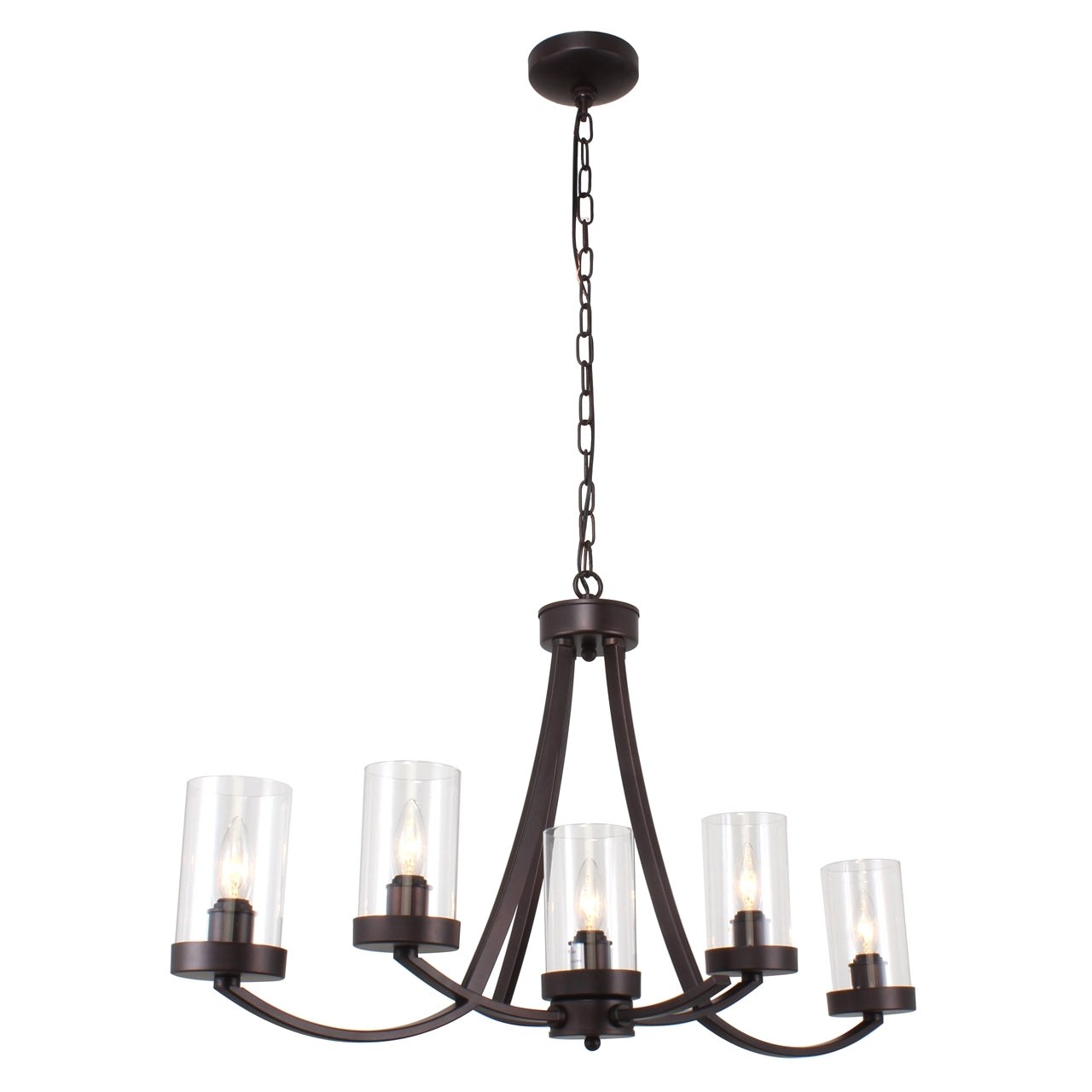 IDA, a Farmhouse style 5 light ceiling pendant chandelier light features a timeless design, sure to be a focal point in any room. This piece features an oil rubbed bronze finish and an uplight design.