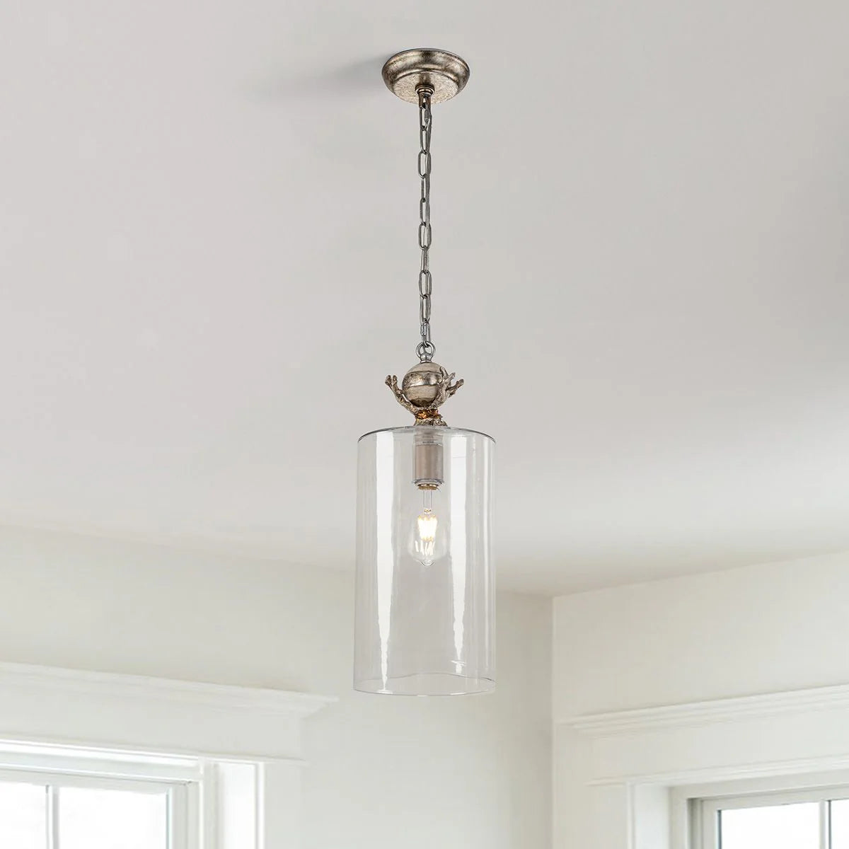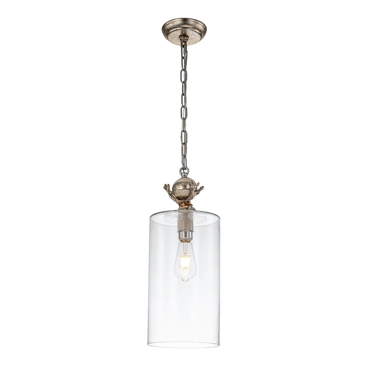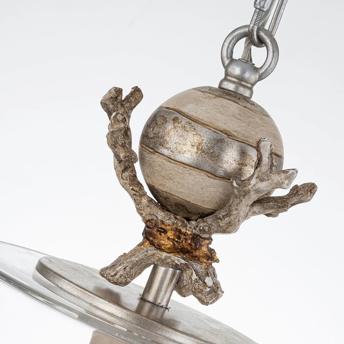 Trellis 8" Mini Pendant provides an organic sculptured design with hand painting and silver leaf. The heavy glass below offers a clean vertical line for the single bulb inside. A classic Lucas McKearn design, combining sculpture, hand finish and function.