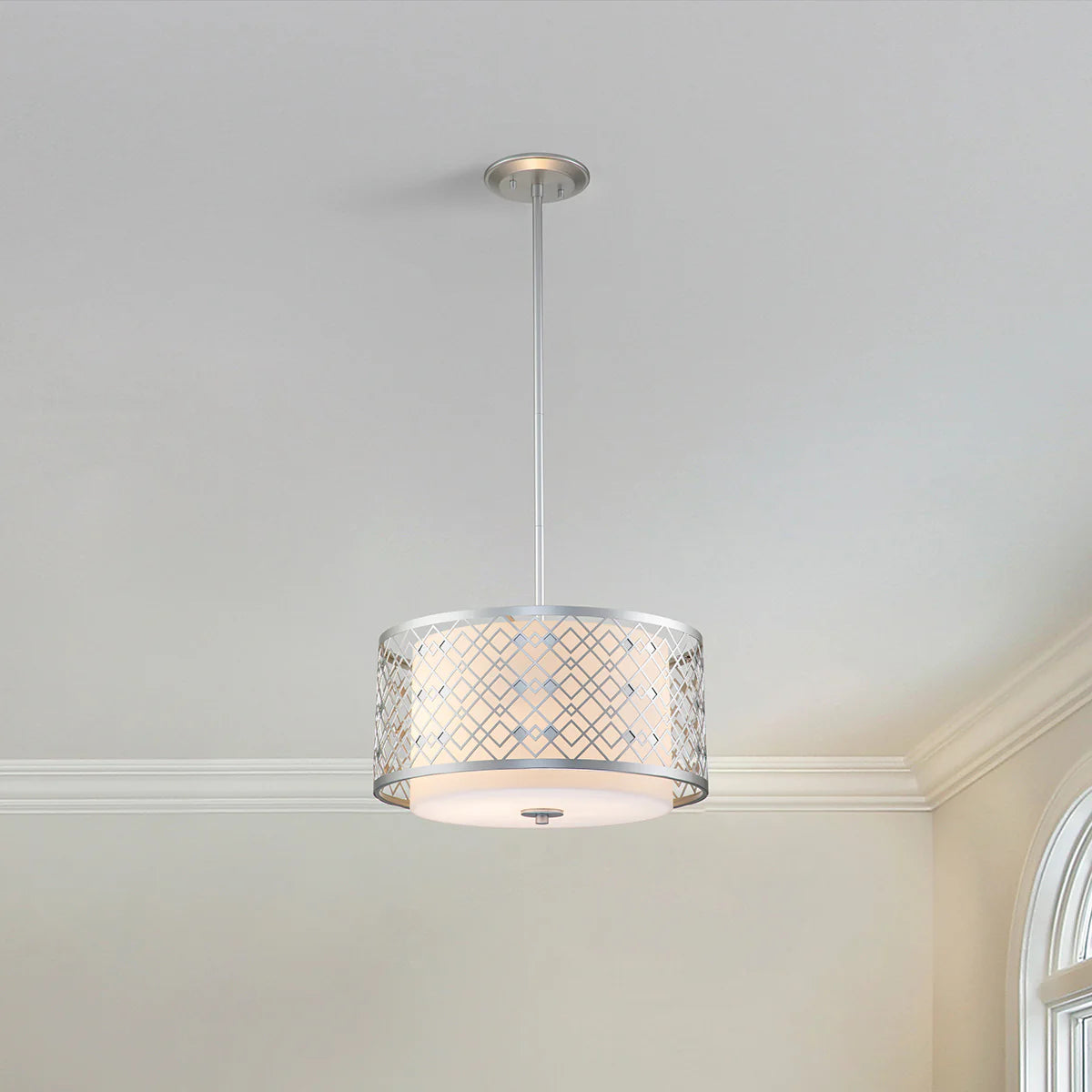 Enhance your space with a modern touch of elegance with the Ziggy Large Pendant in Lacquered Silver Ceiling Light. The luxurious lacquered silver finish adds a beautiful touch, while the sleek design provides ample lighting for your room, living room, dining room, kitchen, pantry, and foyer. Elevate your home decor with this stunning ceiling light.