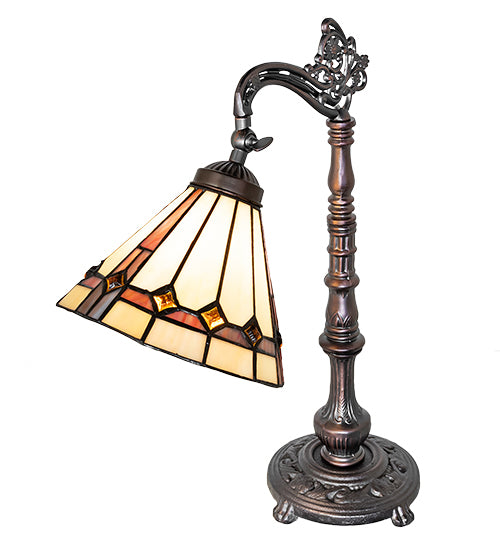 20" High Belvidere Bridge Arm Tiffany Table Lamp Bedside Nightstand Reading Desk Table Light by Meyda