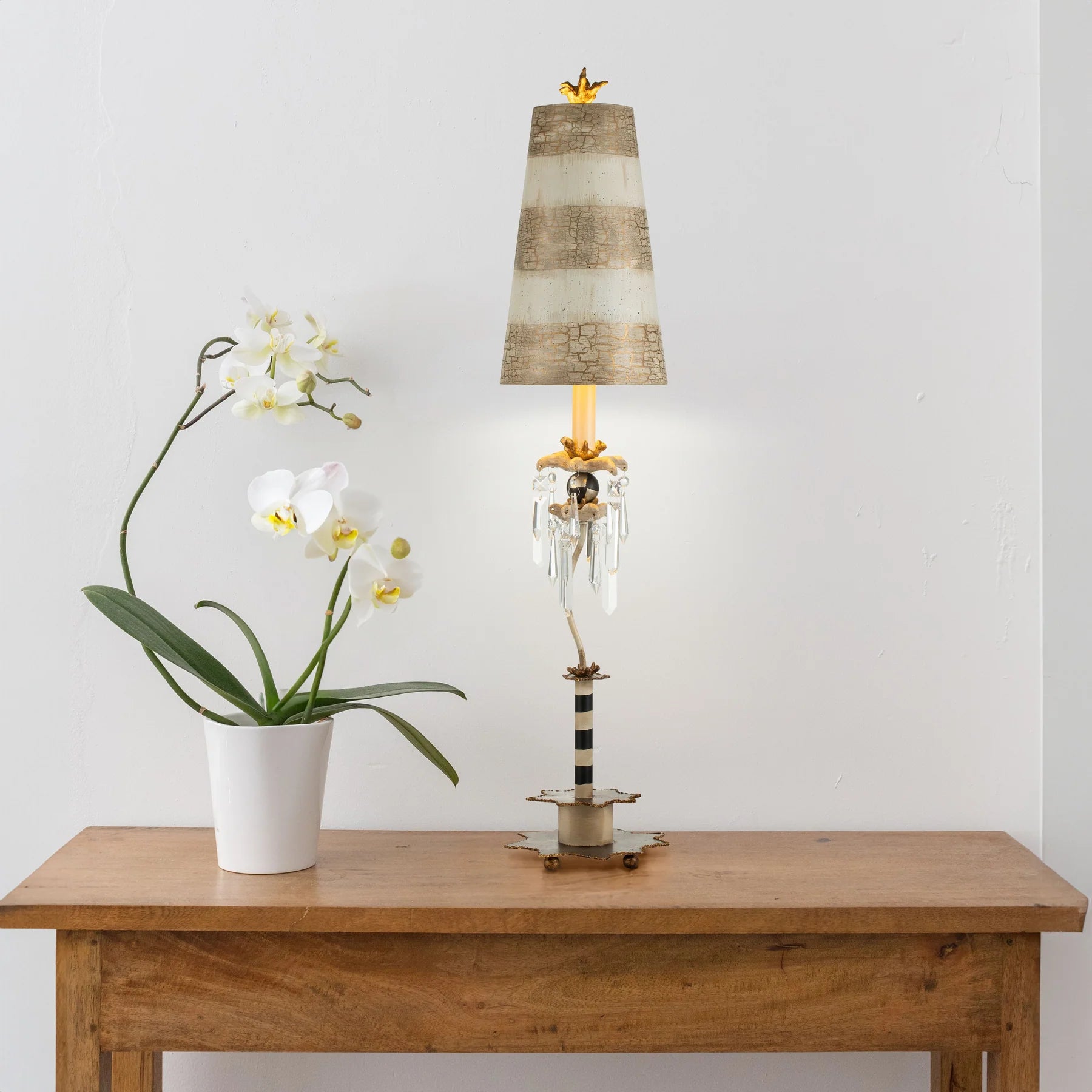 A signature Flambeau design, this mix of whimsical cut crystals and mixed stipes will make any home or office a little more fun. 45" in Height and a 10" base means this lamp definitely is a conversation waiting to happen.