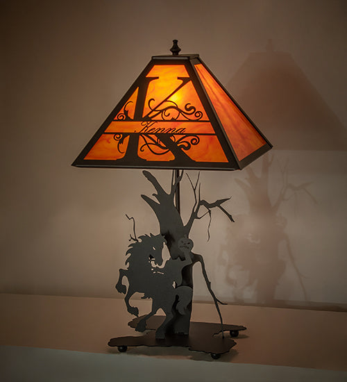 Ignite awe and inspire your space with the enchantment and elevation of this stunning Custom 24" High Personalized Headless Horseman Table Lamp Bedside Nightstand Reading Desk Table Light by Meyda.