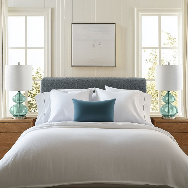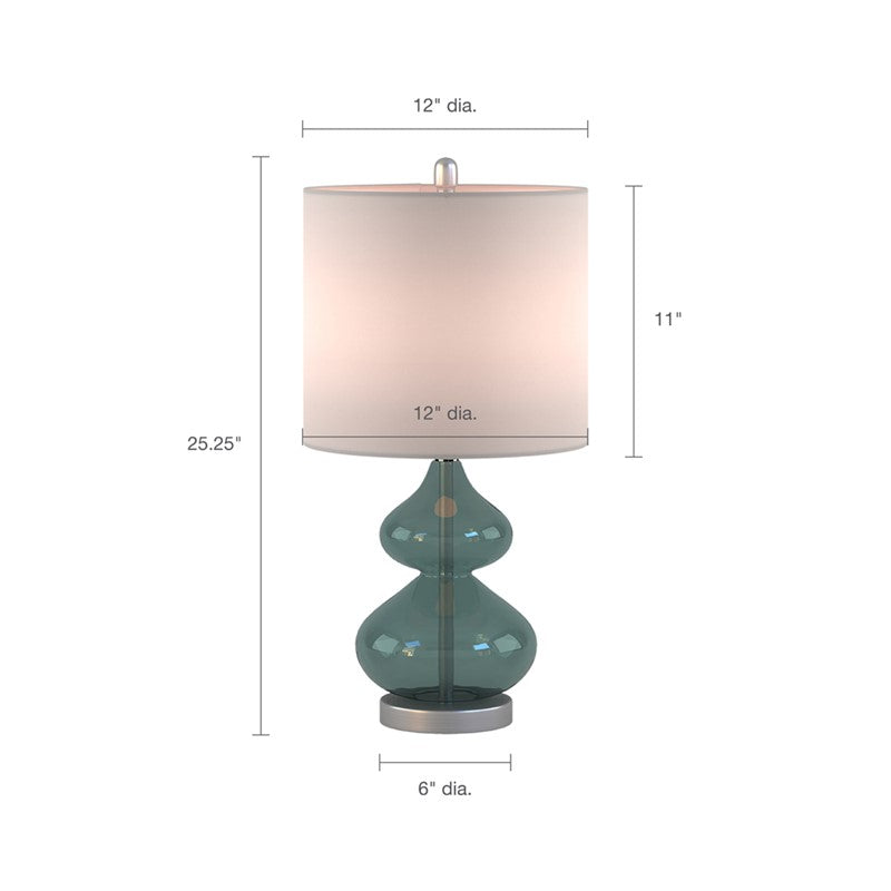 The 510 Design Ellipse Table Lamp Set brings modern elegance to any space. This set of 2 lamps features double-stacked gourd-shaped glass bases with polished surfaces and brushed silver metal accents. The translucent glass softly diffuses light for a warm, ambient glow.