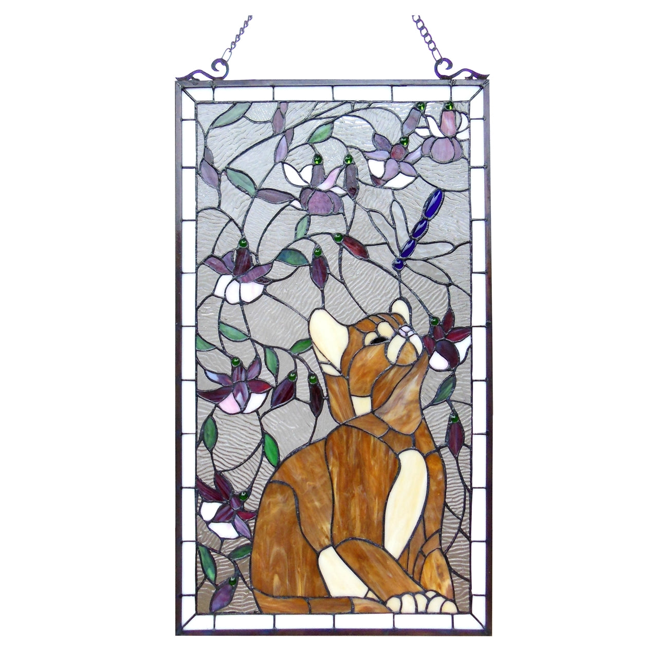 Miaou Tiffany Victorian-Style Stained Glass Vertical Decorative Hanging Window Panel 18x31 Home Decor by Chloe